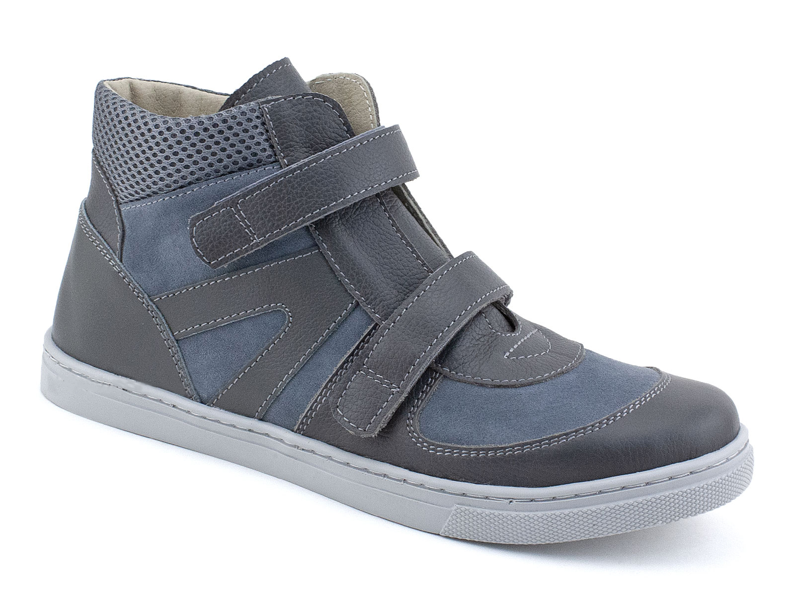 Ботинки на 2-х ремнях и застежкой «велькро» с жестким внутренним задником, продленным до пучков. Верх – кожа, кожподкладка.