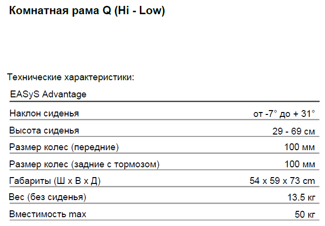 Технические характеристики детской коляски Modular S на комнатной раме Q (Thomashilfen, Германия)