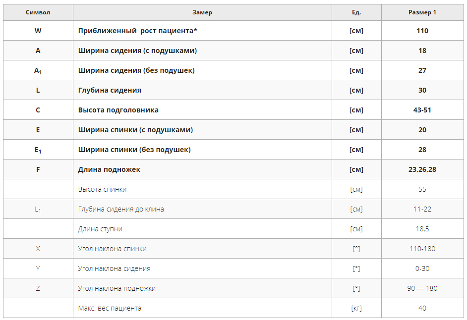 *Измерение роста не должно быть основой для подбора размера оборудования.
