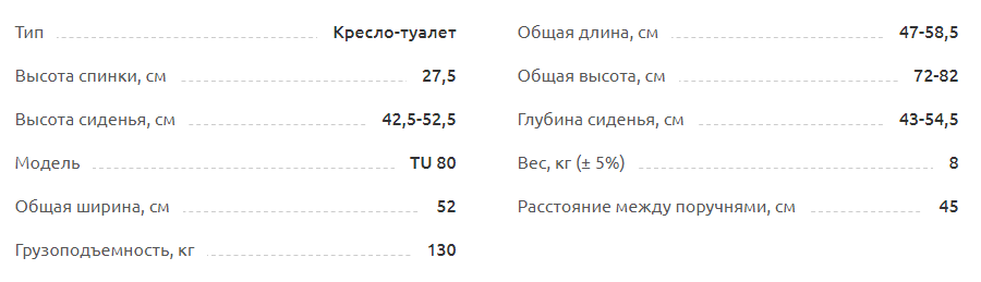 Кресло-туалет (инвалидное) TU 80 с колесами