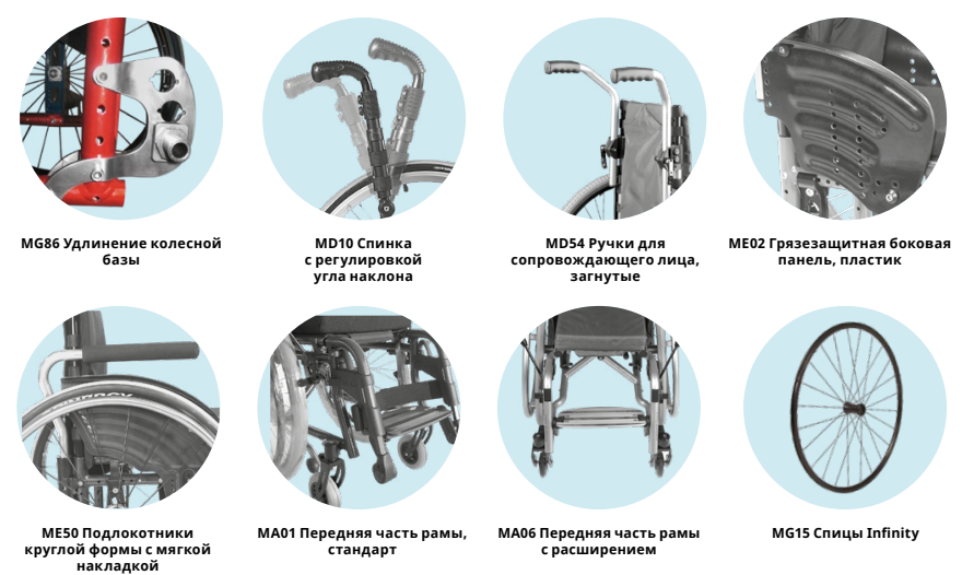 • Ручки для сопровождающего (телескопические/с регулировкой по высоте съемные).