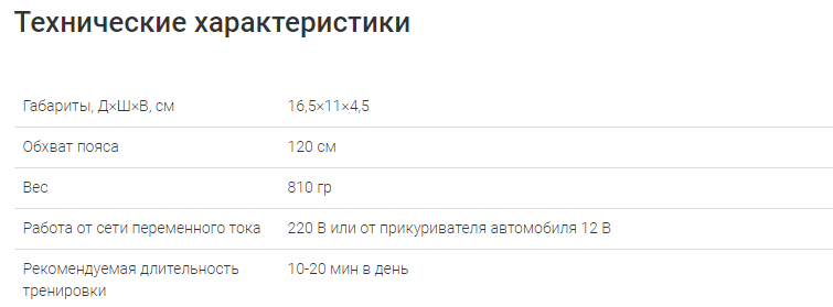 Комплектация пояса для похудения предусматривает наличие разъемов для прикуривателя, а также сетевого шнура.