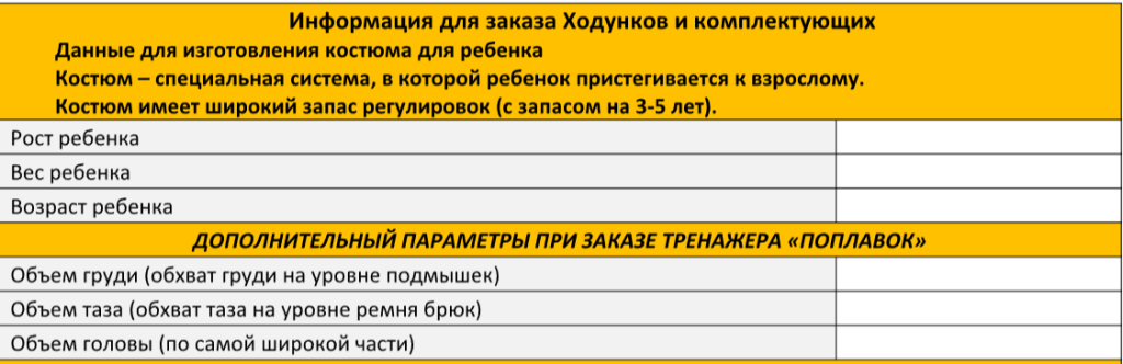 • Конструкция ходунков позволяет адаптировать его под достаточно широкий диапазон размеров и, тем не менее, нам важно знать основные параметры, чтобы костюм подходил для всех, кто будет им пользоваться.