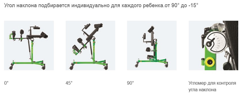 Передне-заднеопорный вертикализатор Gazelle PS может использоваться в качестве как переднего, так и заднего вертикализатора. Это означает, что ребёнок может опираться на него как животом и грудью, так и спиной. Обеспечивает оптимальную поддержку стоп, коленей и бедер. Вертикализатор позволяет ребенку стоять, предлагая тем самым более широкие возможности для игр и развития.